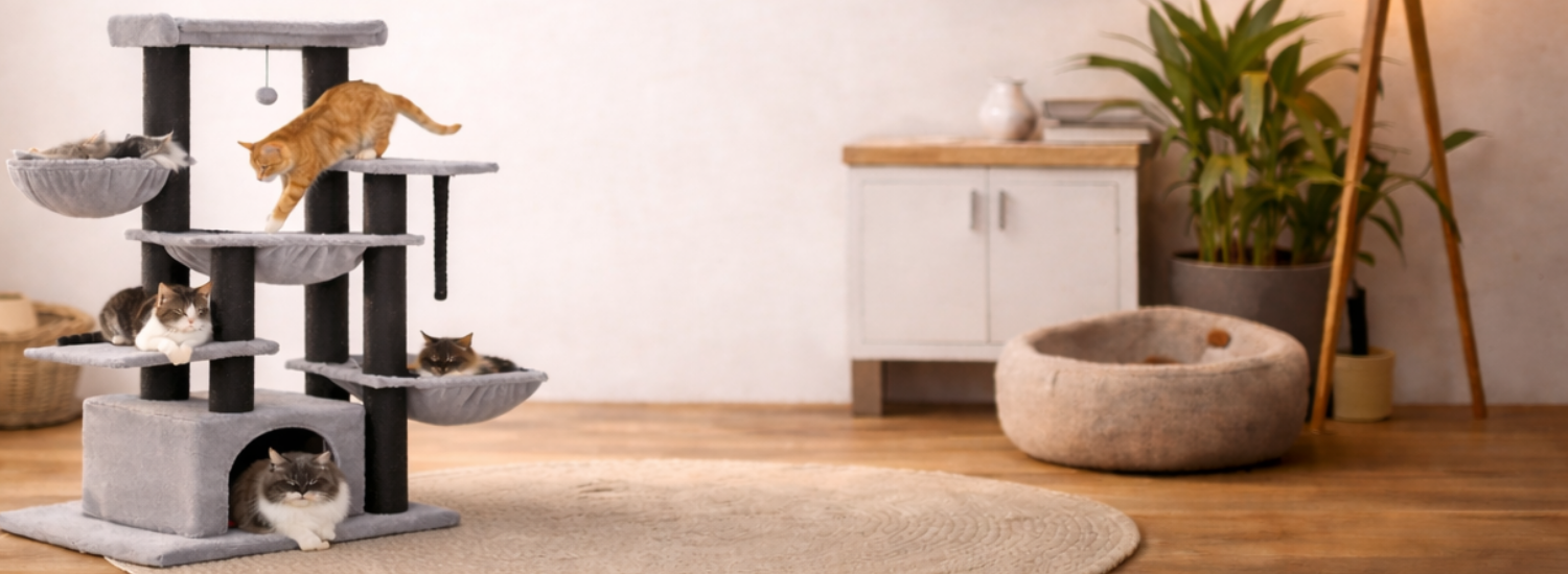 Habitat Félin est une boutique en ligne spécialisée dans les arbres à chat et les accessoires pour l’aménagement intérieur des chats.