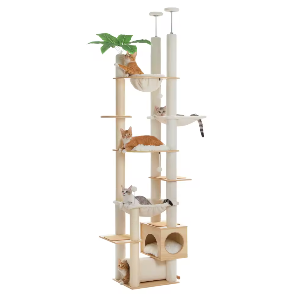Arbre à chat en bois réglable du sol au plafond – Beige